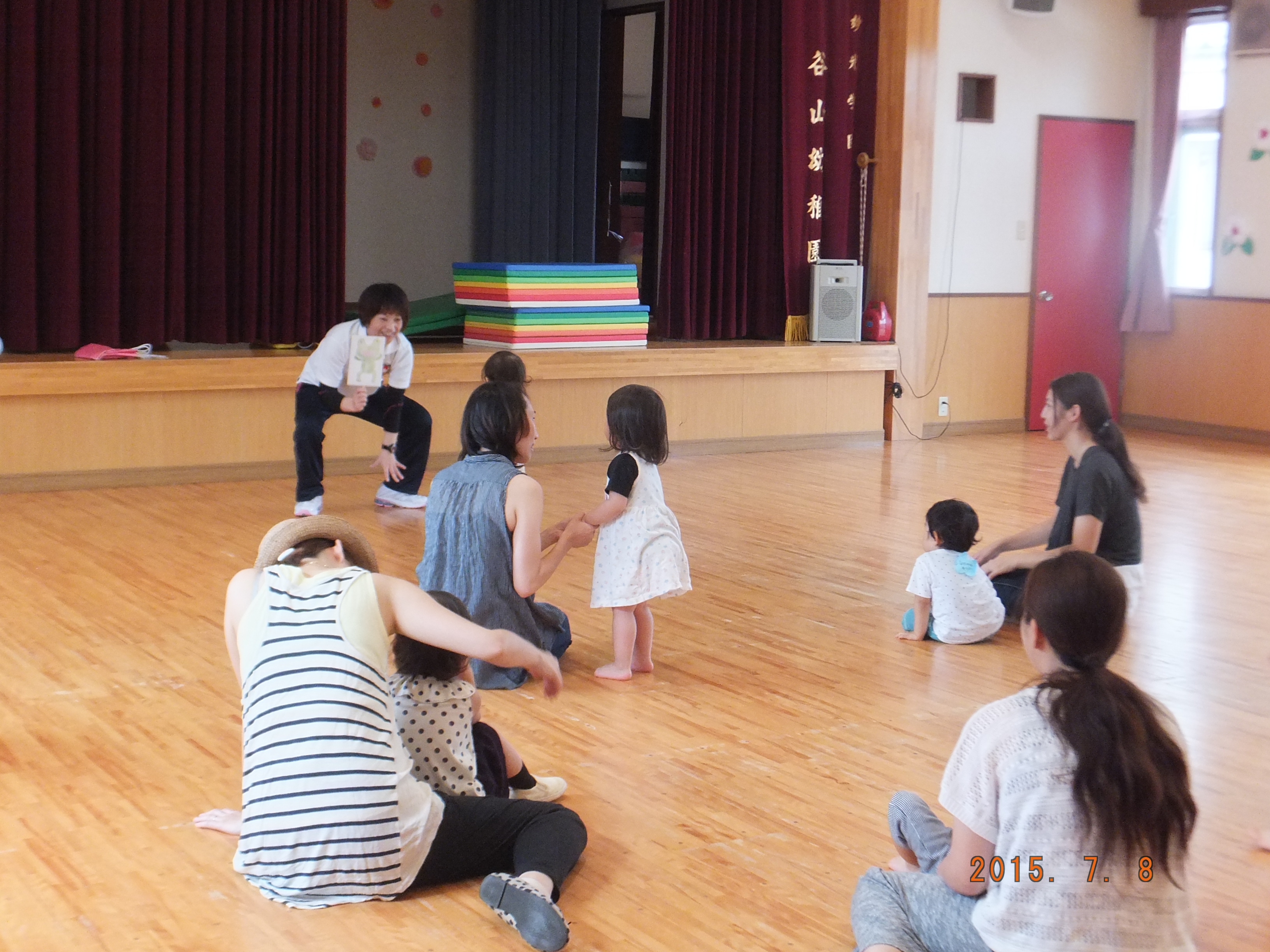 第1回目ではありましたが、24組25人のたくさんのお友達が遊びに来てくれました。お友達や先生達と一緒に歌をうたったり、体操したり、お父さん・お母さんと一緒に触れ合い遊びをしたり・・・たくさんの元気とたくさんの笑顔があふれていた時間でした♪