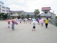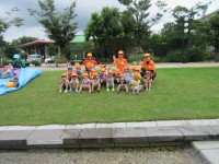 川遊びの予定だったサマースクールも連日の大雨で川が急流と増水のため出かけることはできず、園内での活動と変更。